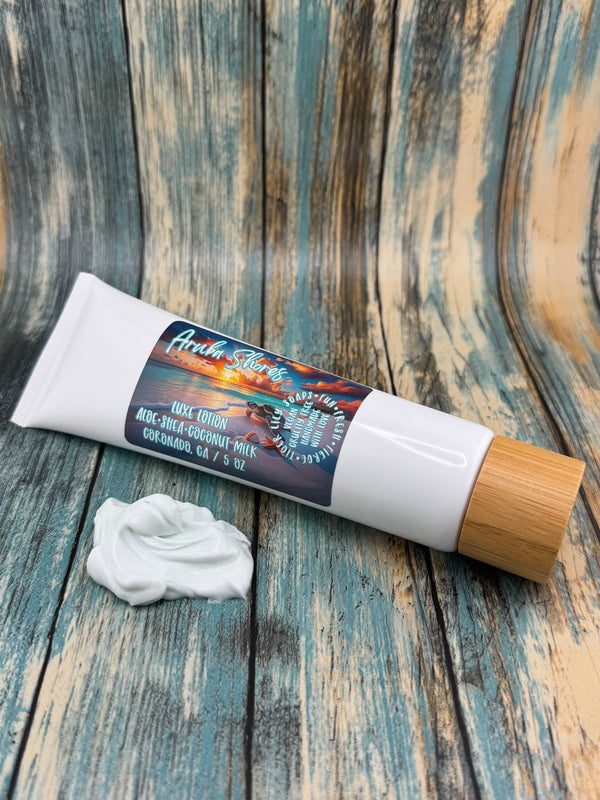 Treat your skin to a tropical glow-up with our Aruba Shores Luxe Lotion, a silky, fast-absorbing moisturizer handcrafted with nourishing botanicals and a scent that transports you straight to paradise.