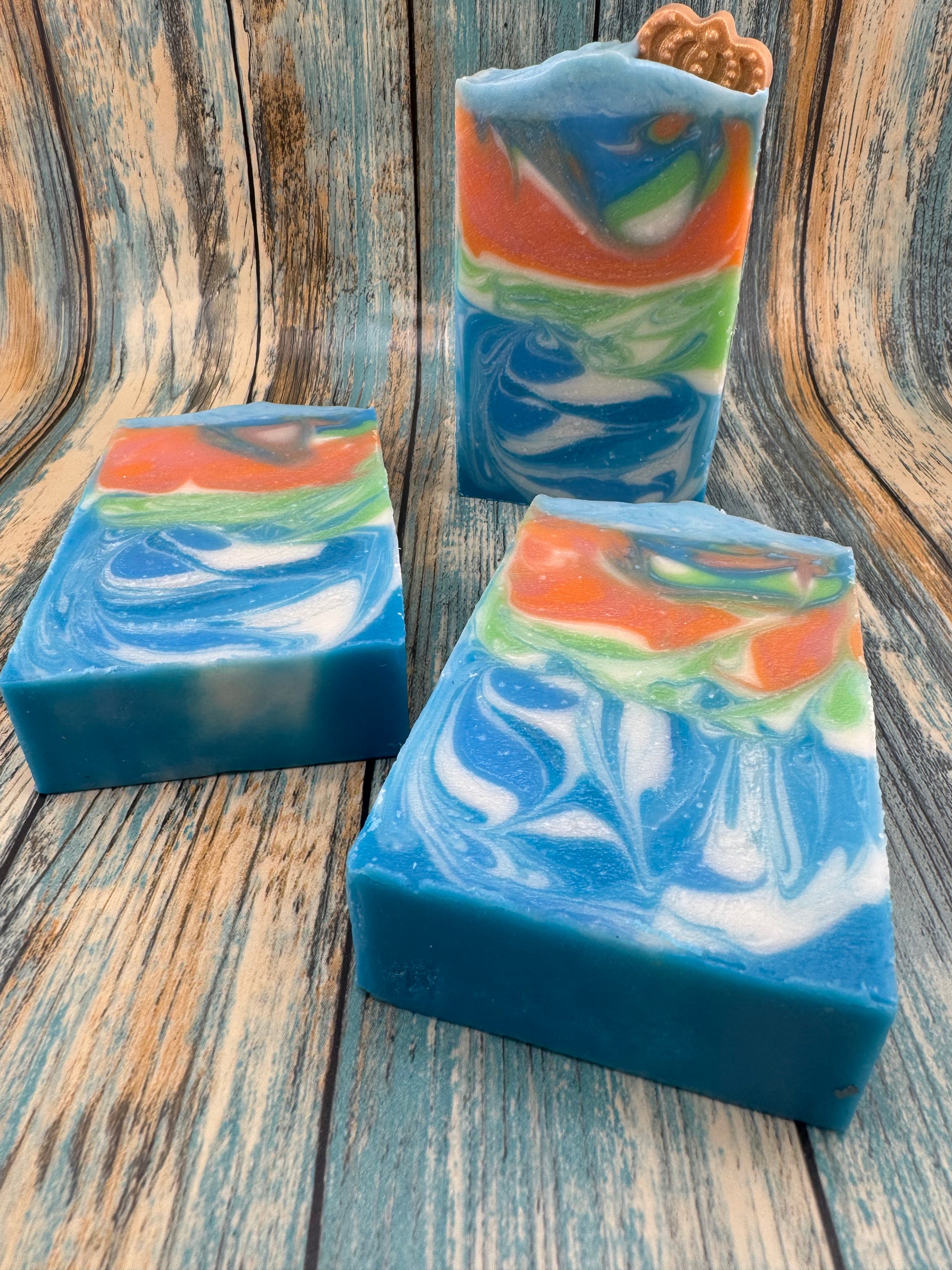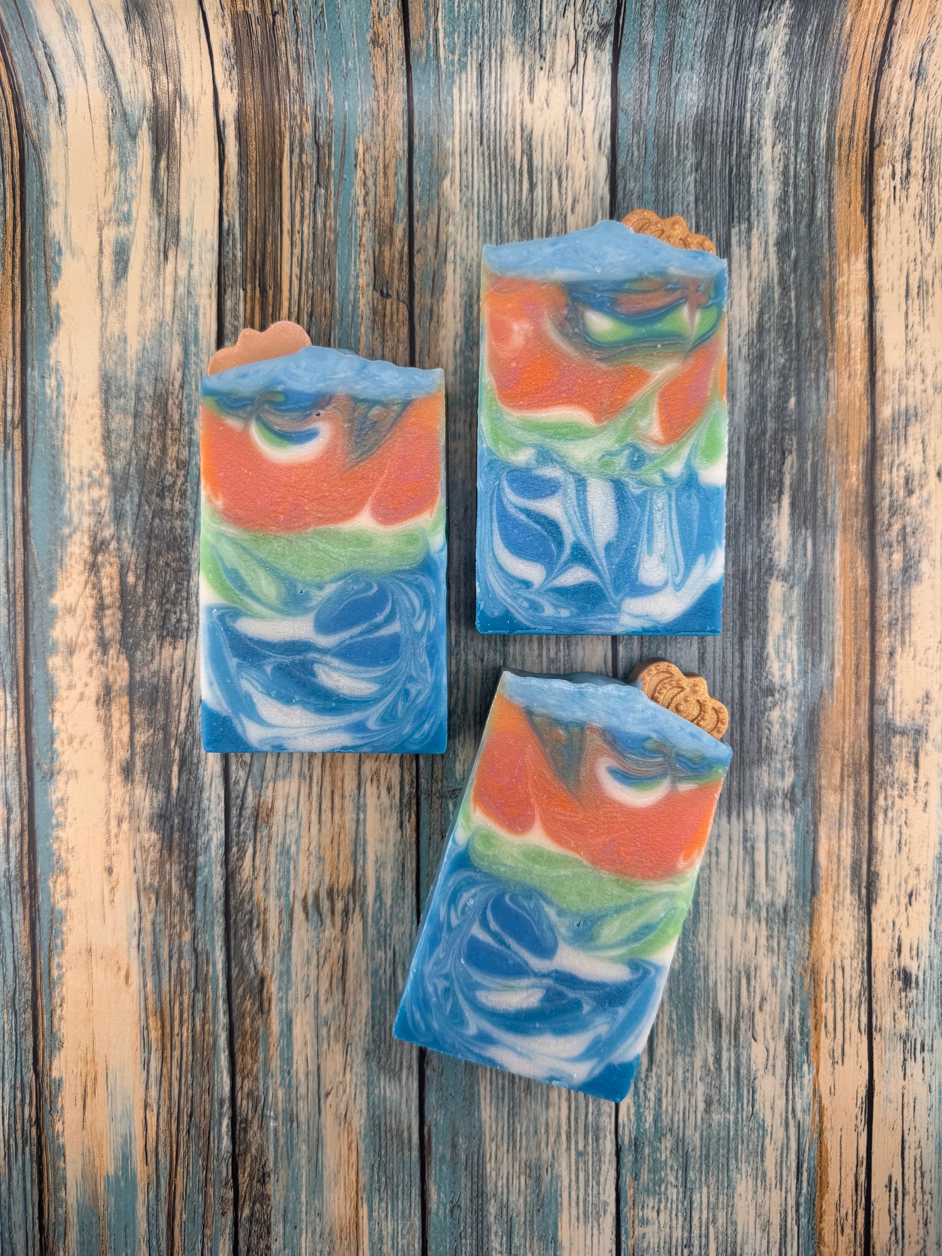 This cold process soap captures that coastal elegance in every swirl.