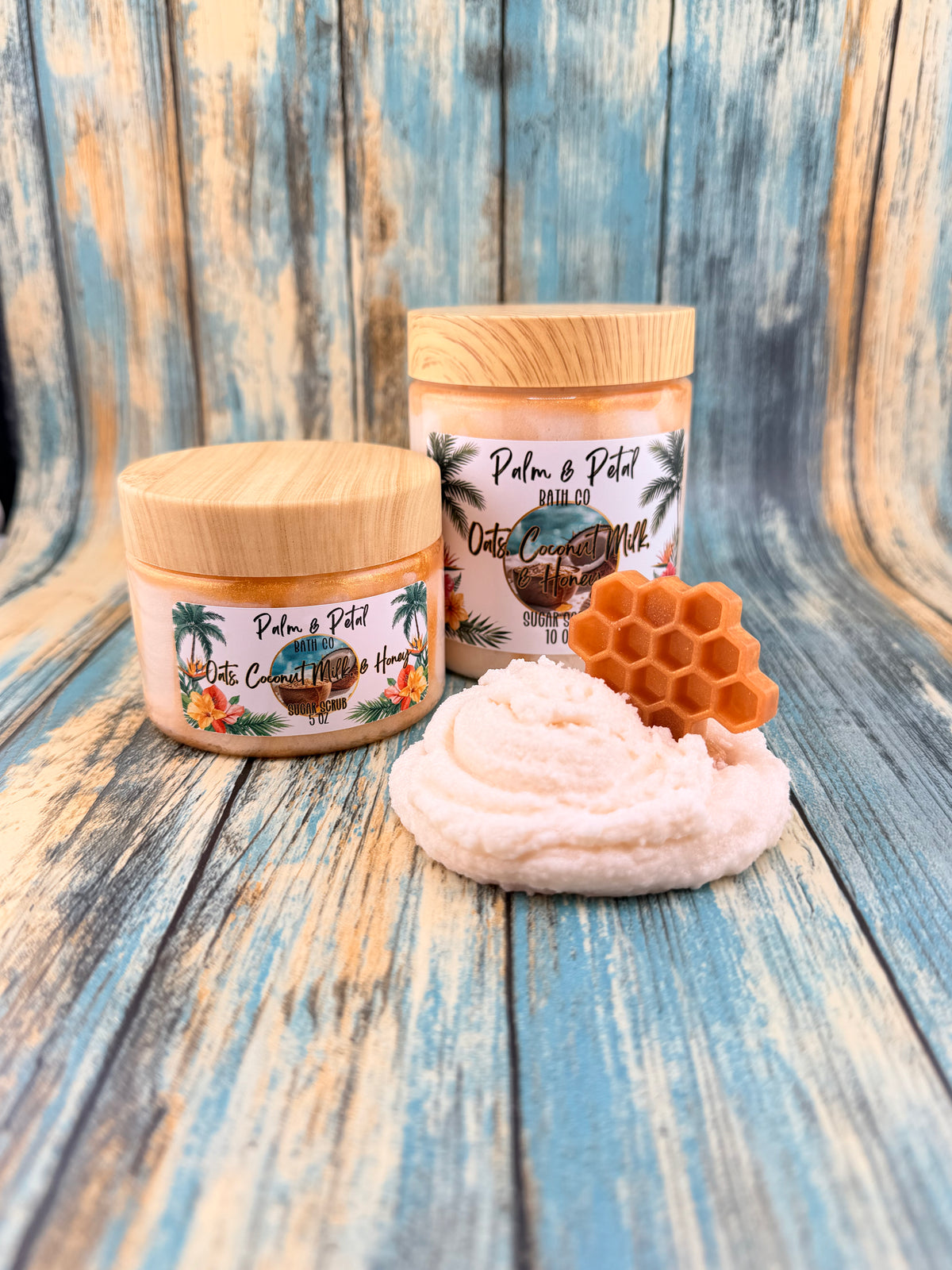 Oats, Coconut Milk & Honey Sugar Scrub is a soft, soothing, skin-loving blend that feels like slipping into your coziest blanket after a long day. With gentle, comforting scent notes of almond, warm milk, honey, and oatmeal, this creamy scrub turns your shower into a calming, spa-like escape. It’s warm, sweet, and beautifully nostalgic — like a fresh bowl of oatmeal drizzled with honey.